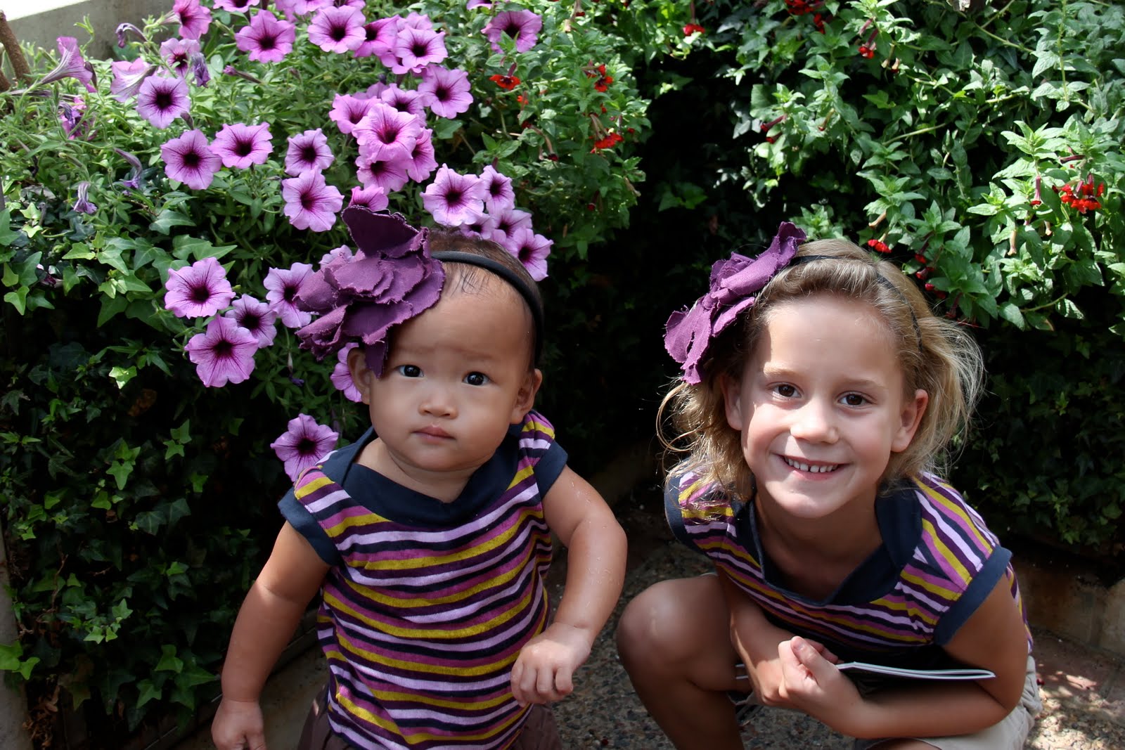 I didn’t make Lydia keep this headband on the whole day (Mark never would have let me. He protests large hair accessories on the girls. Fooey on him.). Had to have it on for at least one picture with purple flowers though.