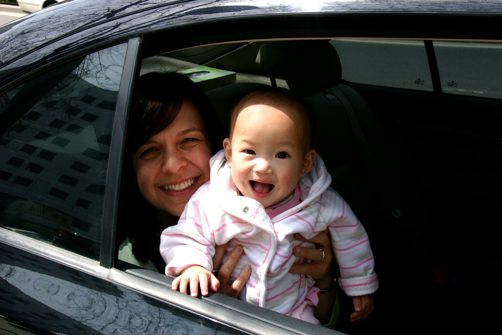 We were quite the attraction at the airport especially because our flight was delayed 2 hours so were there a very long time. Every one was oogling at Lydia. I am shocked how Chinese people will come up to us and just put their arms up asking to hold her. It’s always this uncomfortable situation as we just sort of turn away, and they are standing their disappointed. And, they just keep speaking to me in Chinese about her. I don’t know what they were saying except that I am sure it had to do with her not being dressed warm enough and that she shouldn’t suck on her fingers. Those are pretty much the things we hear most often…in addition to how cute she is, of course. I was so tired from our day that I used the men’s room—yup, I did. As if the women’s rooms aren’t scary enough, I went right into the men’s room at the airport. Didn’t realize it until I came out and noticed our “audience” giggling while covering their mouths. Nice.