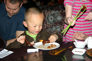 We had a group dinner which also included the Woods family, a family I’ve gotten to know over email who just adopted a 4 year old healthy little boy named Jake. Jake was a real kick–doesn’t speak a word of English but was super excited to to show off his picture album that his parents had sent him before traveling. And, my heart was warmed when he was calling me “ayi” (auntie) by the end of the dinner. We enjoyed Cantonese specialties of this region including (drumroll, please) roasted pigeon. We all tried it–tasted like the dark meat of turkey, not so great. But, I tell you what, those Chinese kids just went to town on it.