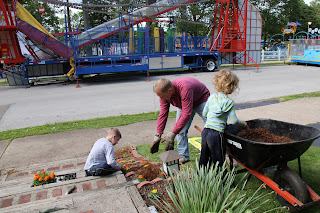 Dogwood Festival week is now over. I’m guessing that next year, Lydia will need a wristband too to ride until she can’t ride any more. We reached a sad turning point this year – we can no longer walk around as a family without someone not so happy. Evan wanted to be with friends and do “grown up rides.” Ashlyn eventually was convinced to graduate to those rides too. Drew, on the other hand, was still pretty excited about the bouncy cars. At least they all united for the Monkey Maze, Pirate Island, and the Kuckoo House–3 fun house type rides (all of which drive me crazy). I’ll be glad when all are tall enough to not need a parent escort. I wonder if Lydia will ever be tall enough. :)