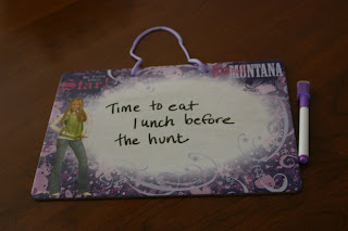 I started out last Friday with this–a Hannah Montana dry erase board. Yes, I was reduced to Hannah Montana. Took the kids to Target to get my muteself a dry erase board and they had these for only $1. The normal plain white boards were $5. So, this is what I got. Ashlyn seemed to think it was cool. And, Evan has enjoyed coloring in Hannah’s face (does anyone really call her Hannah or is it always Hannah Montana?)
