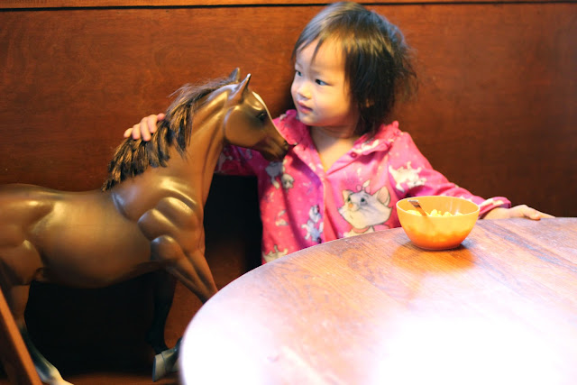When she came downstairs yesterday when she should have been napping, I thought one of the big kids had gotten her out.