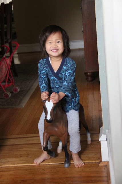 When she came downstairs yesterday when she should have been napping, I thought one of the big kids had gotten her out.