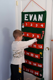 Growing up, we had a grandmother and grandfather who had a great idea that sorta grew probably way beyond what they thought it would. They made big felt advent calendars with pockets for each day in December for their grandchildren. But, as you can imagine, the number of their grandchildren grew and grew and grew. My grandfather had 4 daughters of his own who had, oh, just a few kids and my grandmother had 3 kids who gave her 5 grandchildren. They ended up making these calendars and filling their pockets each year for, I think, 20 kids.