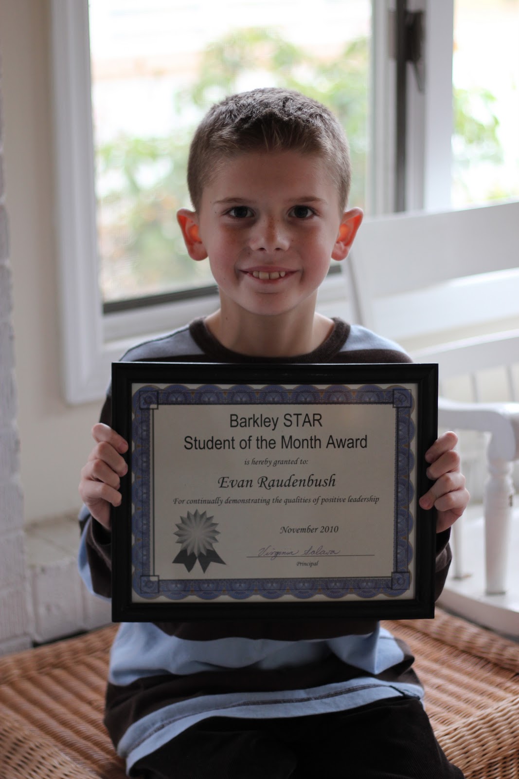 At lunch, they announced the students of the month. They do this every month. And, he’s in 3rd grade. So, he’s heard the names called each month and watched the kids go up to get their award. This time, his name was announced. He was so excited to tell me. And, you know that I made a huge deal about it and gave him the red “you are special” cup at dinner and had an ice cream party for dessert to celebrate complete with chocolate syrup and seconds. He told me a couple times, “I heard them start to make the announcement and I was hoping it would be me and it was!” His friend Matt told him he was famous. And, he sorta is. At least at Barkley Elementary School. And in our house.