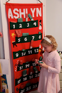 And, only a few mishaps so far with Lydia sneaking in and unwrapping Ashlyn’s #17 and #19. And, she totally knew she was doing something wrong. What a stinker.