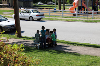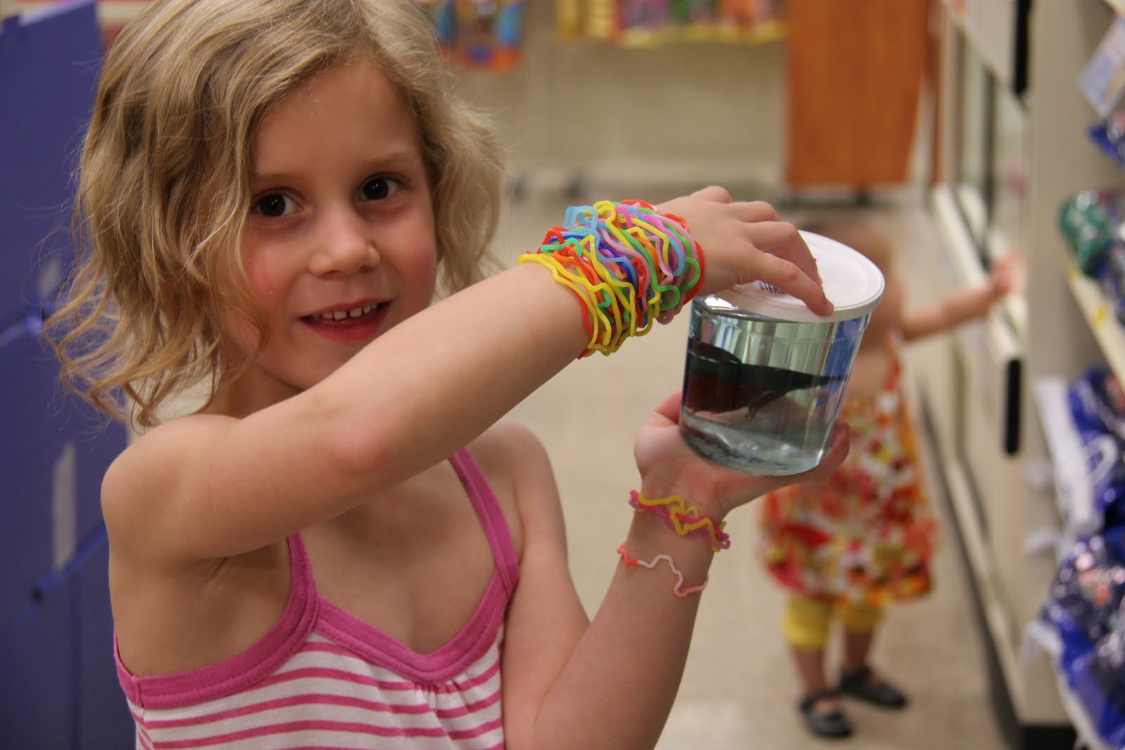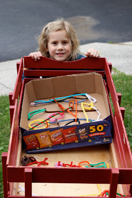 Hooray! Someone came! This lady let her kids pick out pipe cleaner thingies! Yea! They got 2 magic wands and a pipe cleaner dog. Ashlyn was so proud! A few more customers came after them before Ashlyn closed up shop.