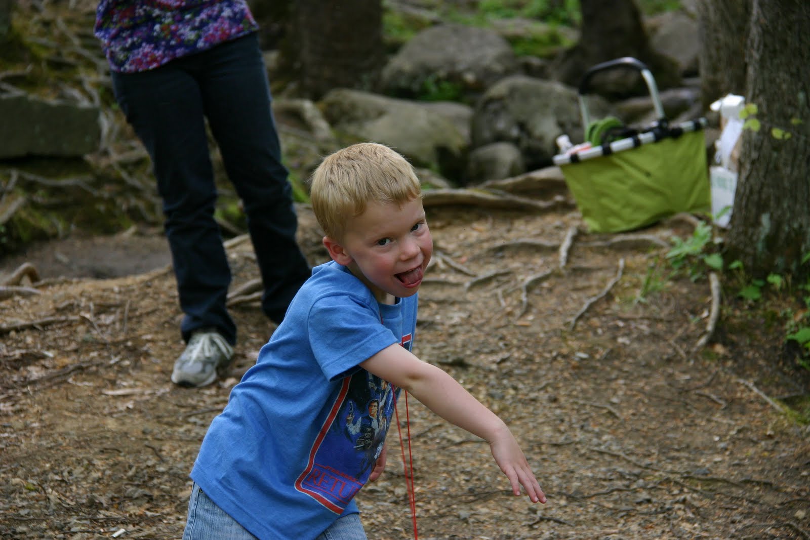 It was the Kindergarten Center’s Teddy Bear Picnic day today–kids brought their favorite bear, sang some bear songs, watched a very silly bear skit, and enjoyed a real deal teddy bear picnic. As you can see from the picture, Drew really wanted to be part of the action. That’s him, about 6 feet in front of the front row, inching closer and closer to the stage. Pardon the heads in the picture–I was the crazy mom standing up with my big Canon still camera, a handycam, and a toddler on my hip. I’m the woman I have made fun of in the past.